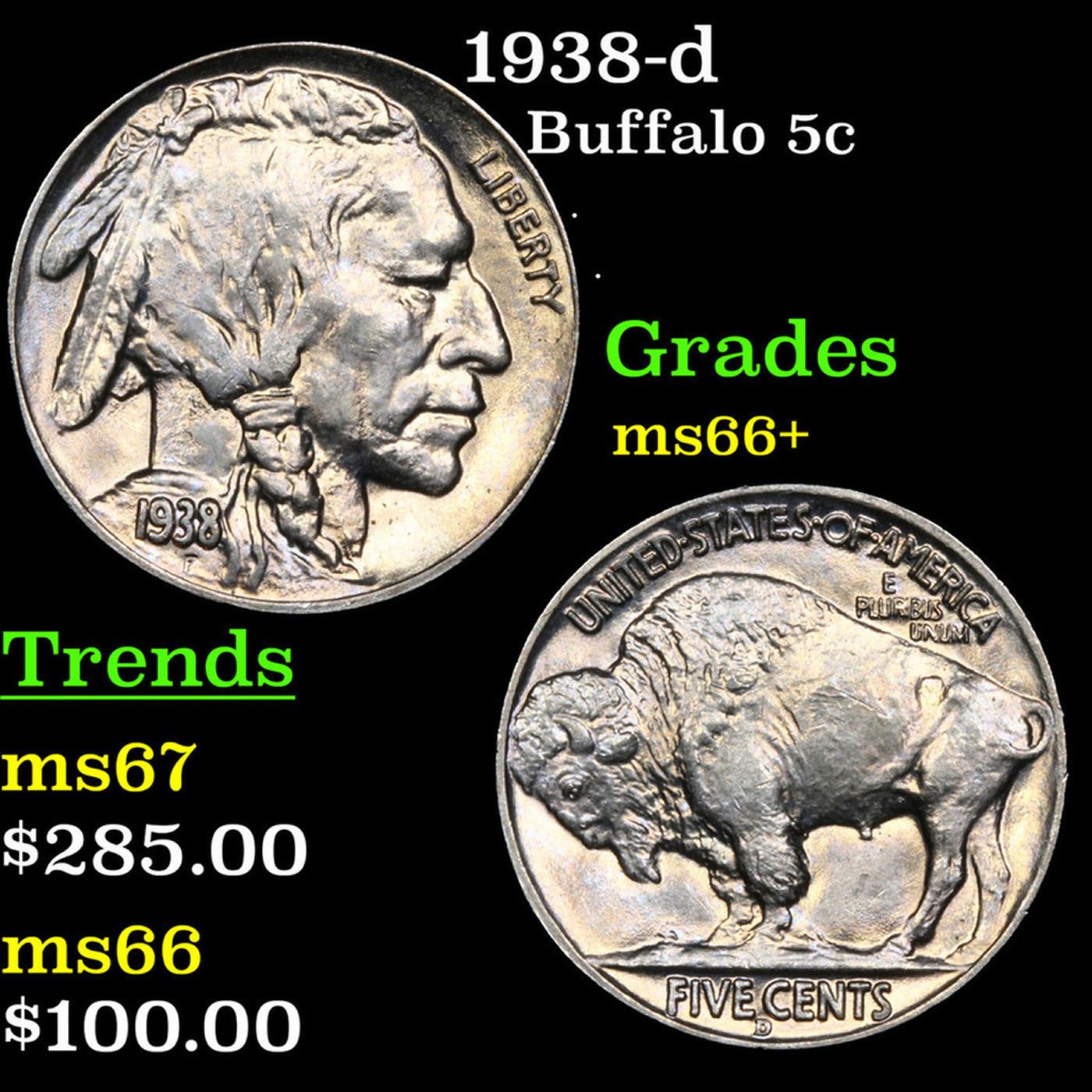 1938-d Buffalo Nickel 5c Grades GEM++ Unc.