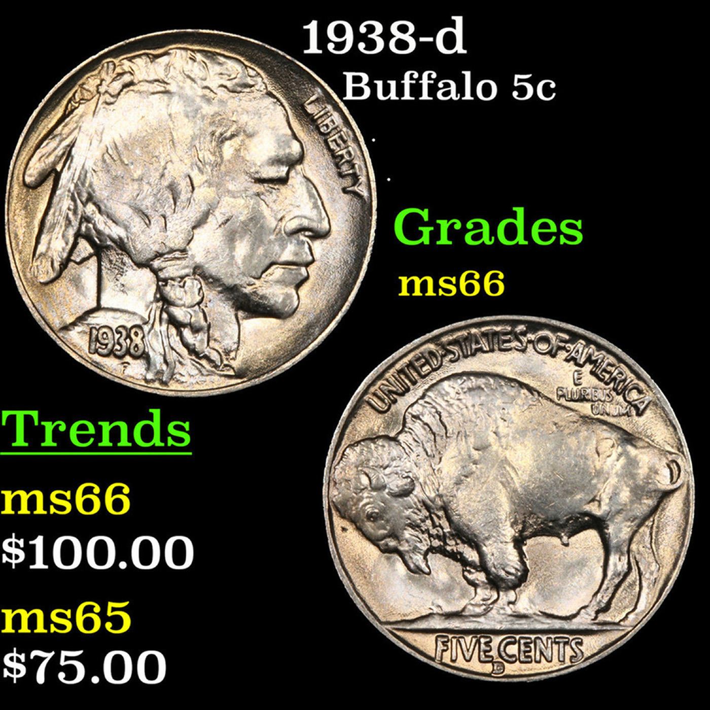 1938-d Buffalo Nickel 5c Grades GEM+ Unc.