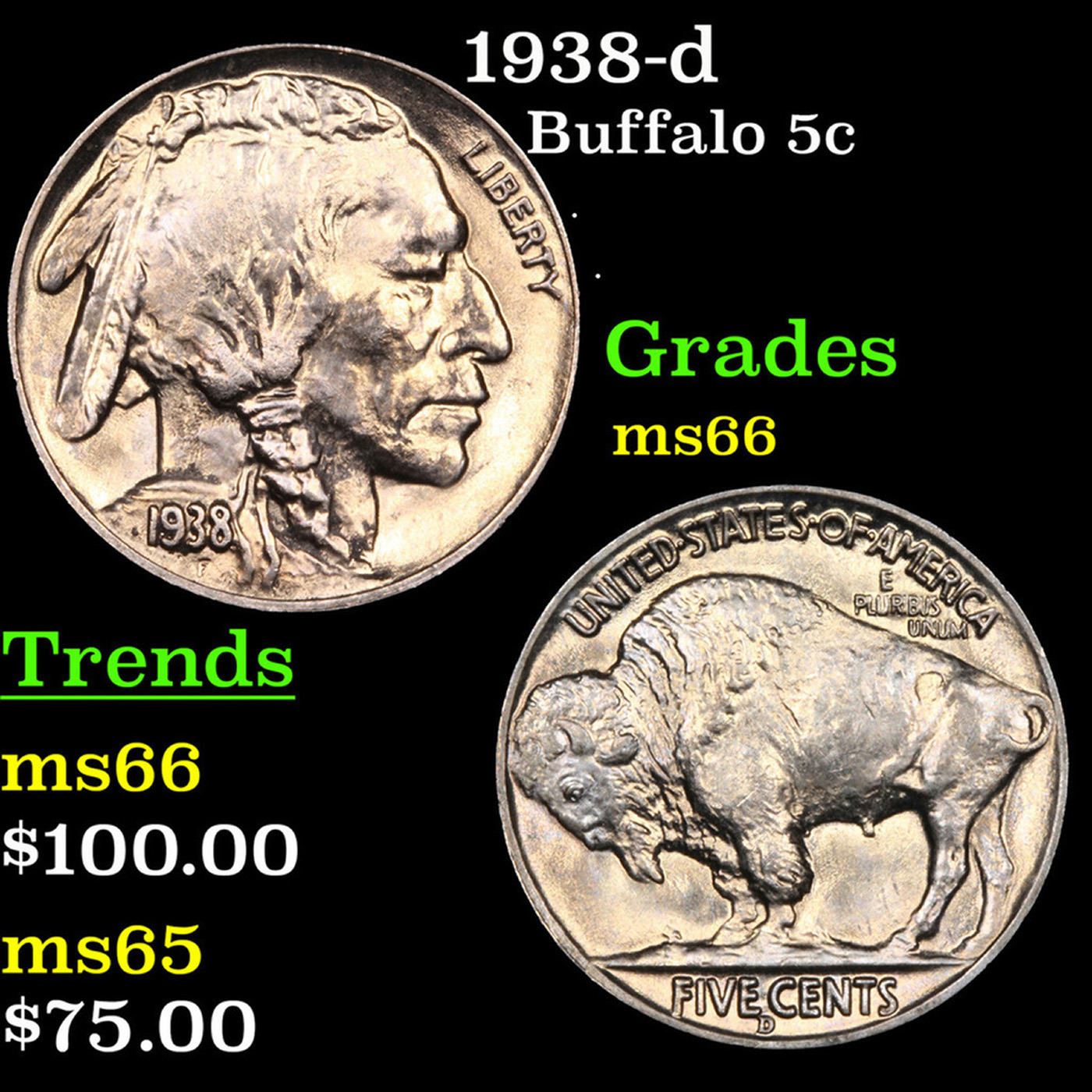 1938-d Buffalo Nickel 5c Grades GEM+ Unc.