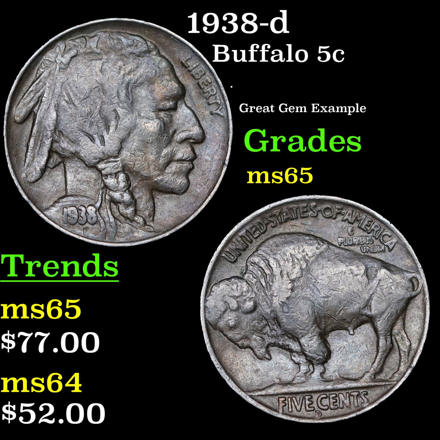 1938-d Buffalo Nickel 5c Grades GEM Unc.
