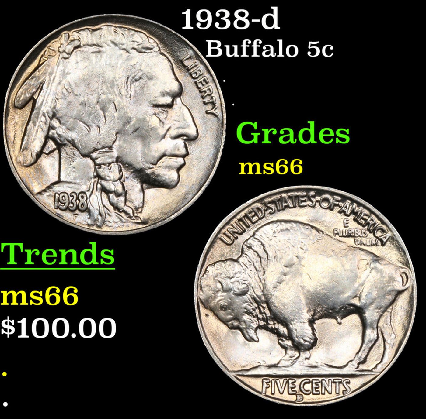 1938-d Buffalo Nickel 5c Grades GEM+ Unc.