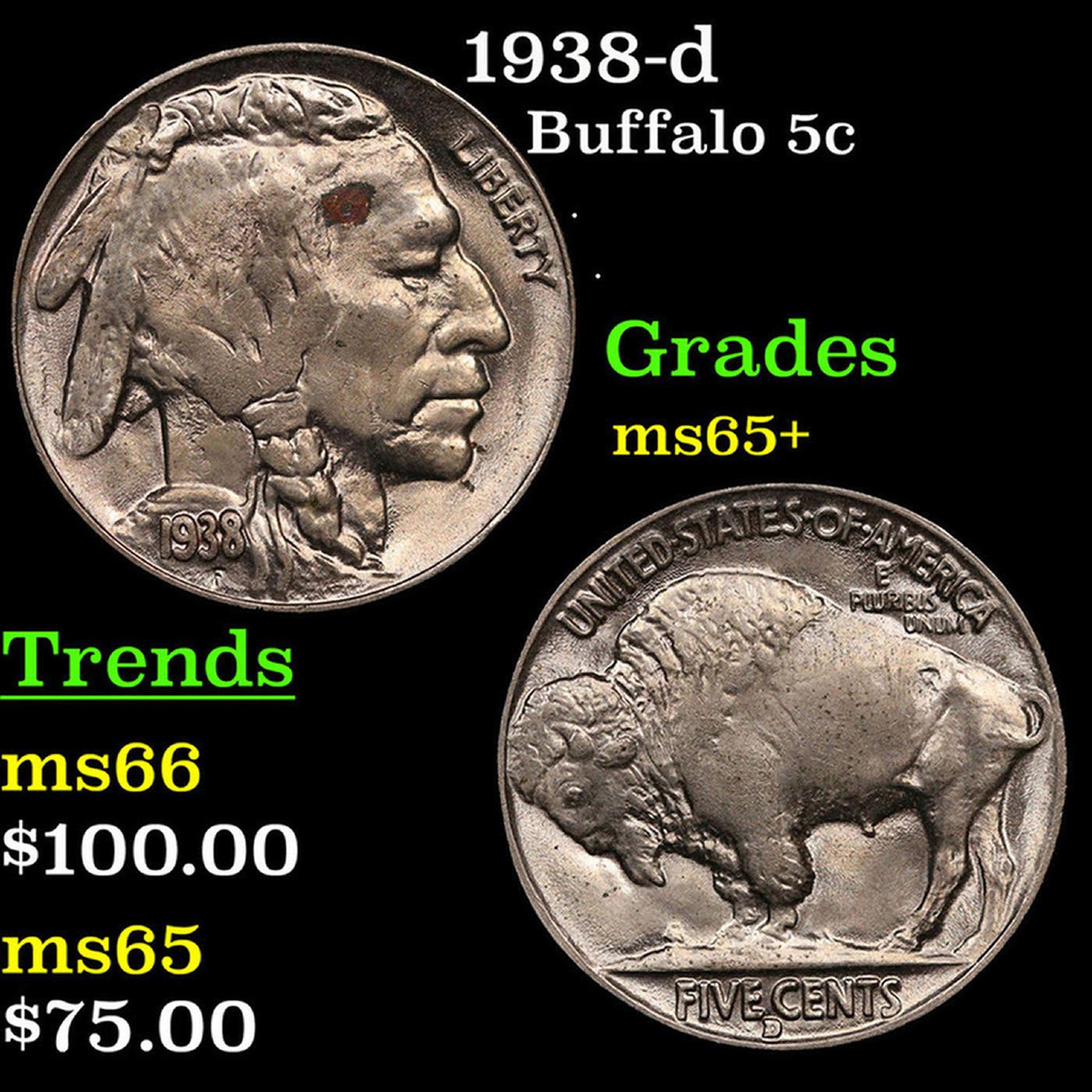 1938-d Buffalo Nickel 5c Grades GEM+ Unc.