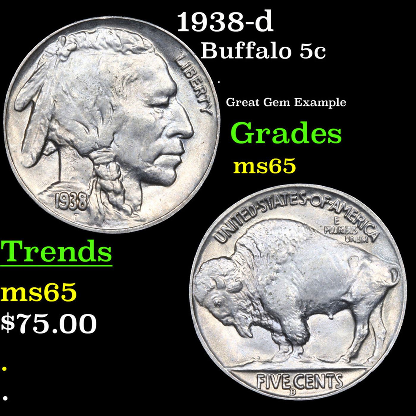 1938-d Buffalo Nickel 5c Grades GEM Unc.