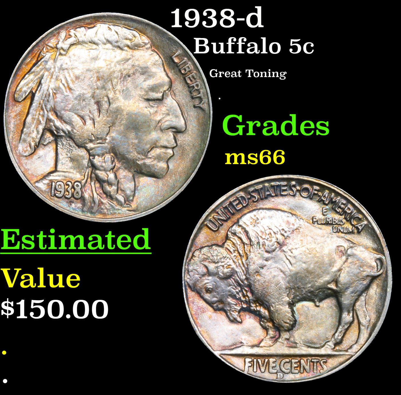 1938-d Buffalo Nickel 5c Grades GEM+ Unc.