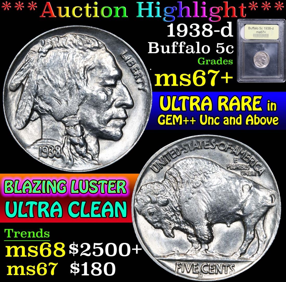 1938-d . . Buffalo Nickel 5c Grades Gem++.