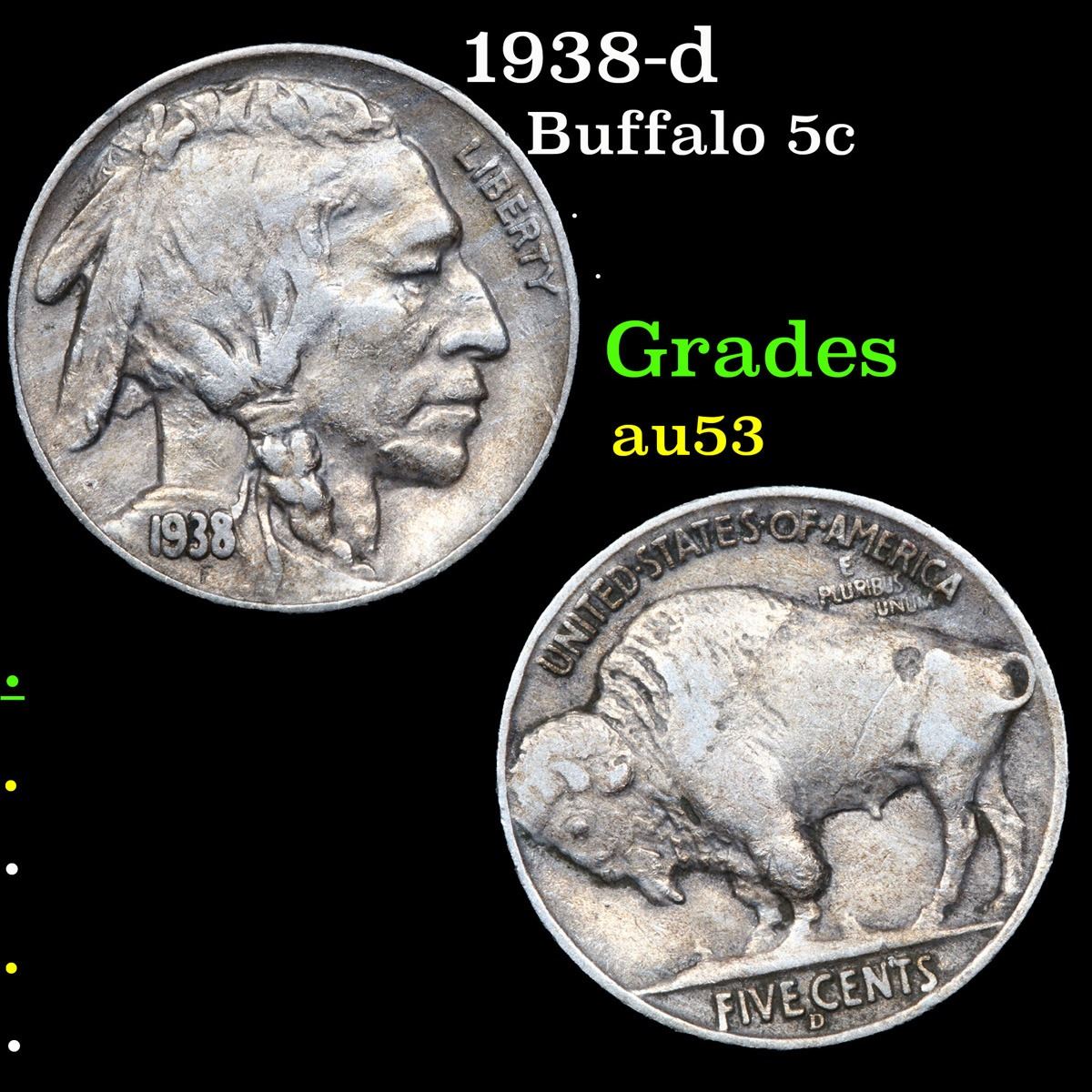 1938-d . . Buffalo Nickel 5c Grades Select AU.