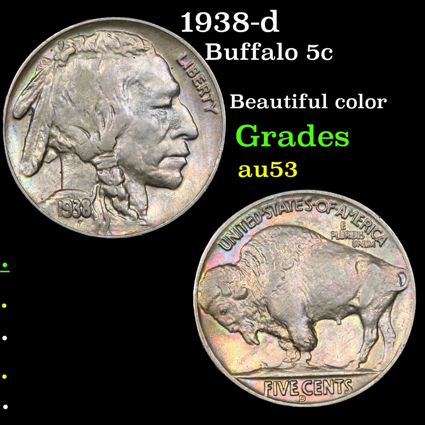1938-d Buffalo Nickel 5c Grades Select AU.