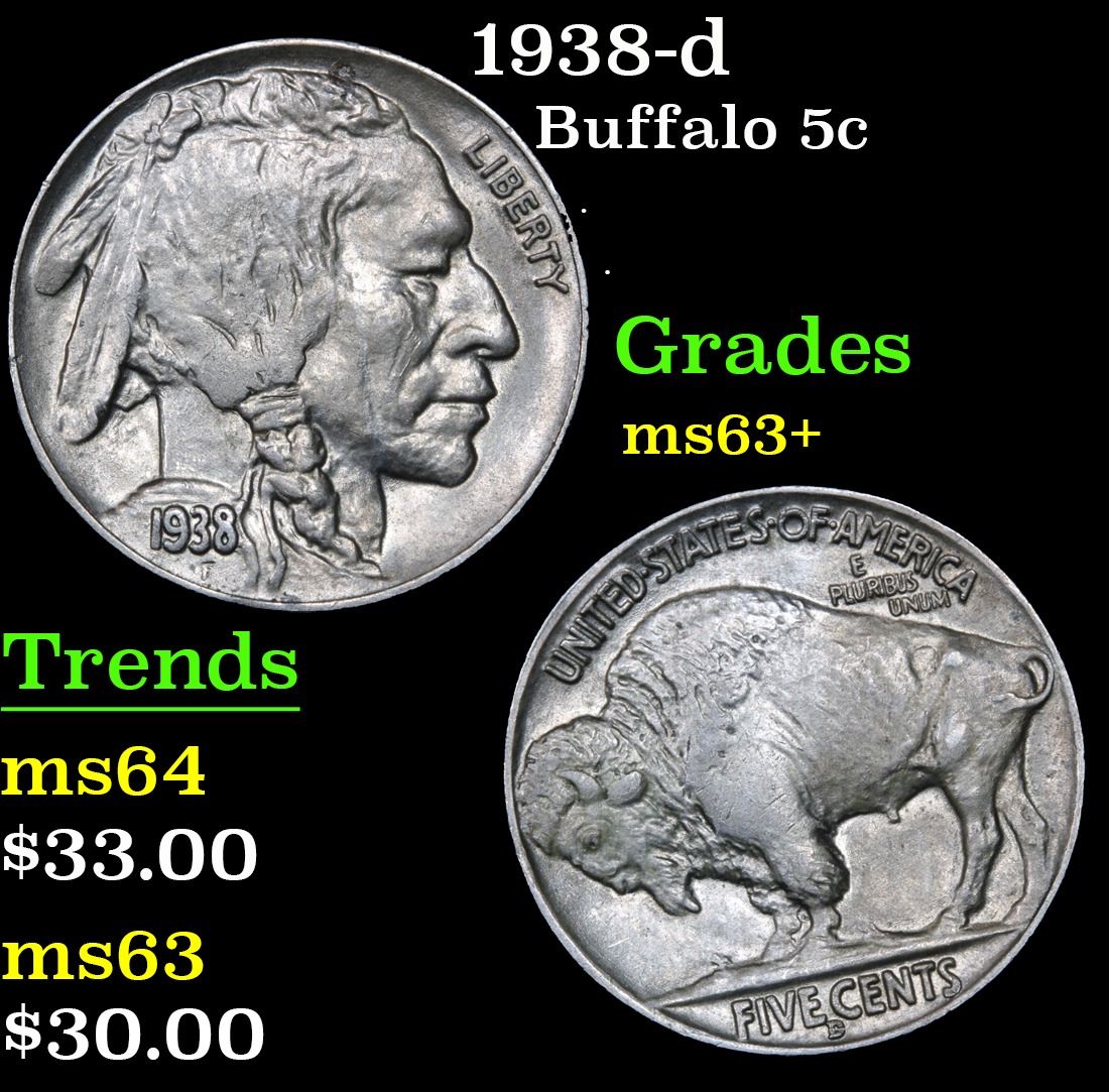 1938-d . . Buffalo Nickel 5c Grades Select+ Unc.
