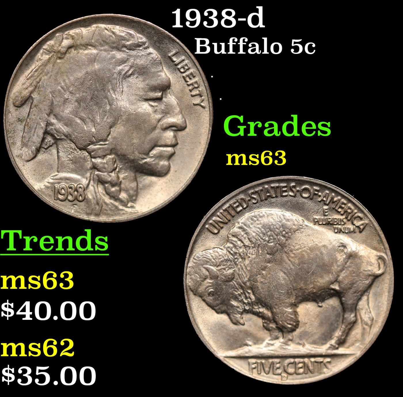 1938-d Buffalo Nickel 5c Grades Select Unc.