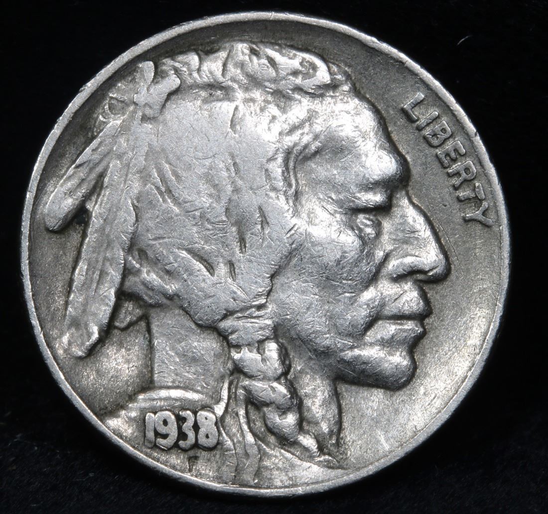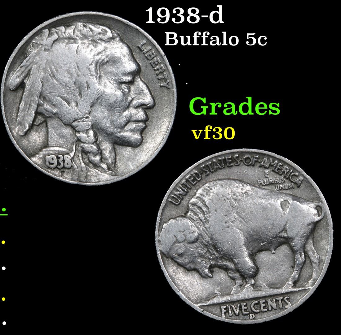 1938-d . . Buffalo Nickel 5c Grades vf++.