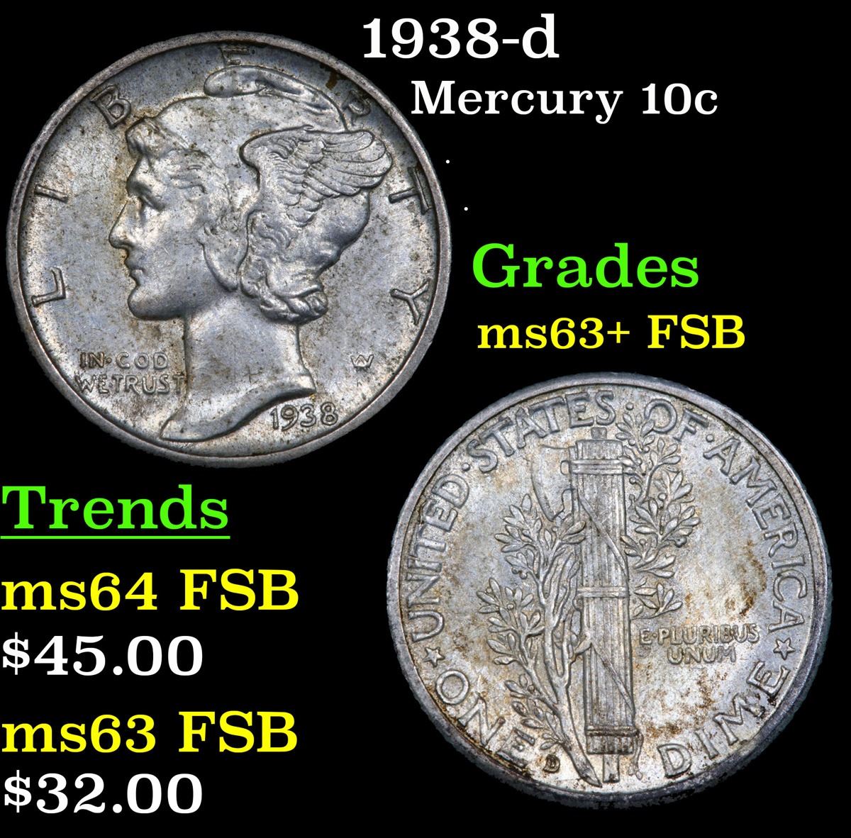 1938-d Mercury Dime 10c Grades Select Unc+ FSB.