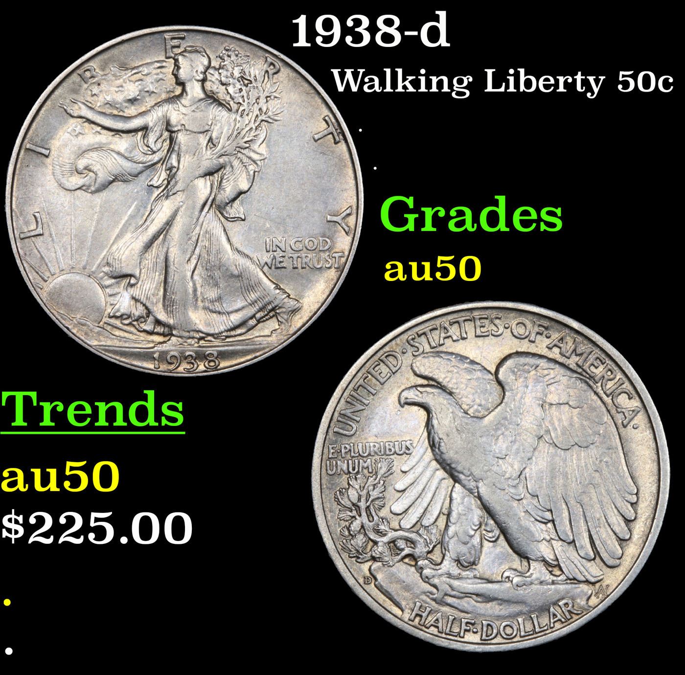 1938-d Walking Liberty Half Dollar 50c Grades AU, Almost Unc