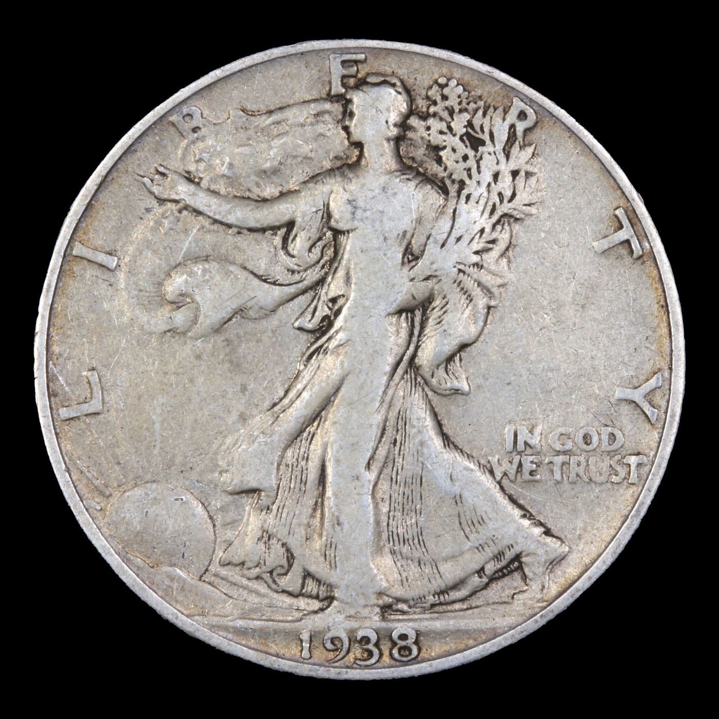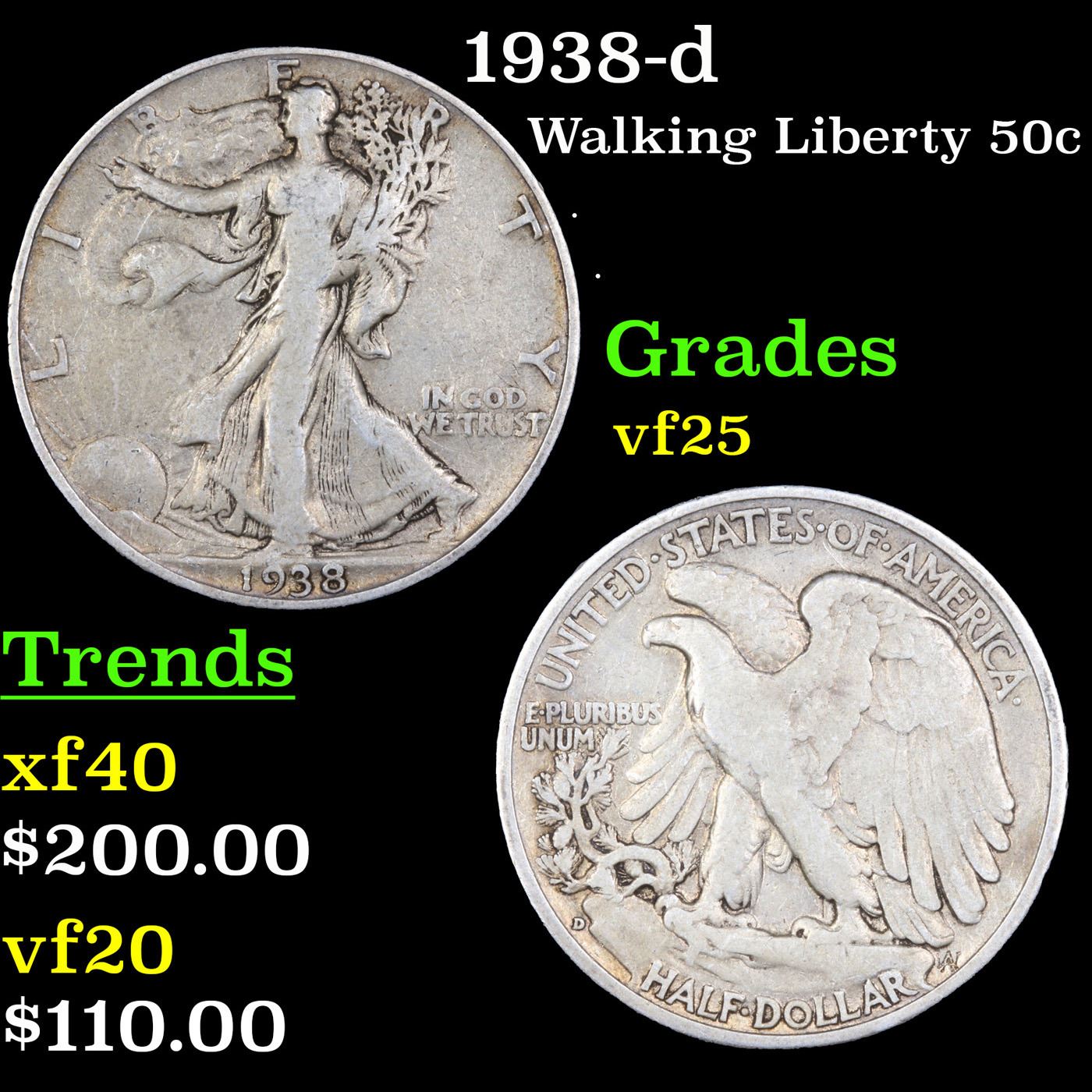 1938-d Walking Liberty Half Dollar 50c Grades vf+.