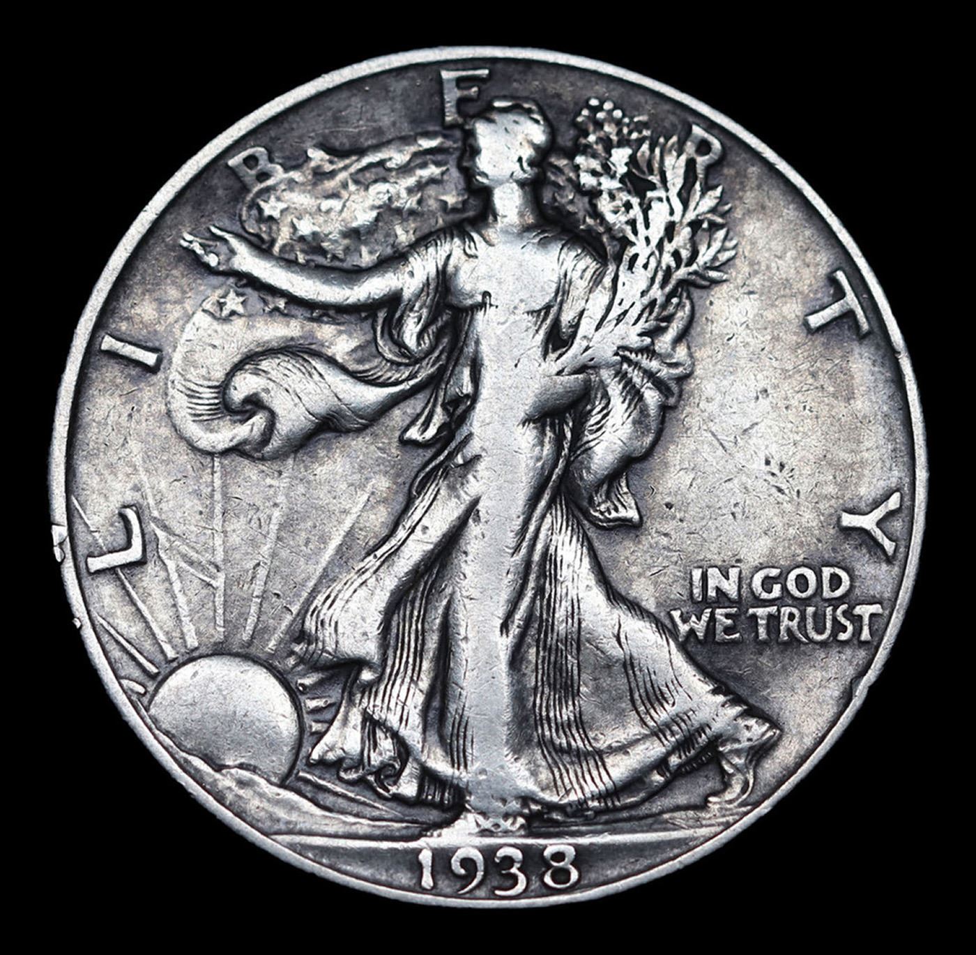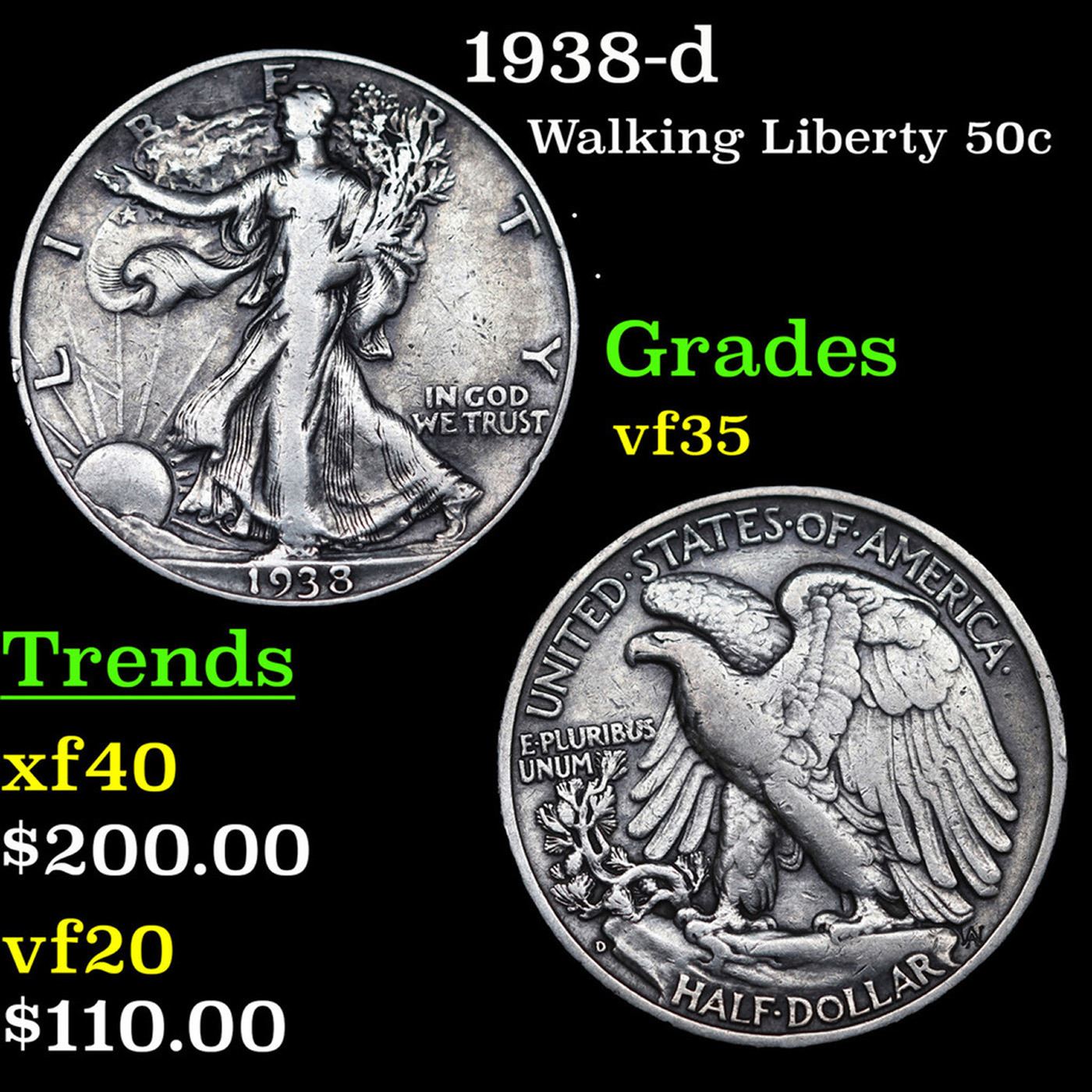 1938-d Walking Liberty Half Dollar 50c Grades vf++.
