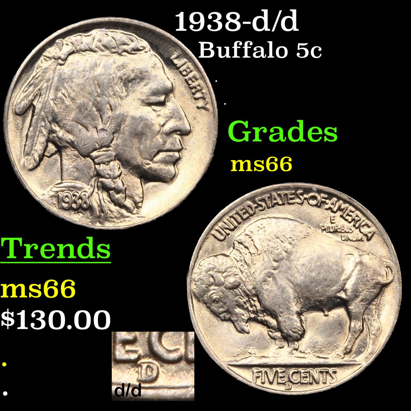 1938-d/d Buffalo Nickel 5c Graded GEM+ Unc.