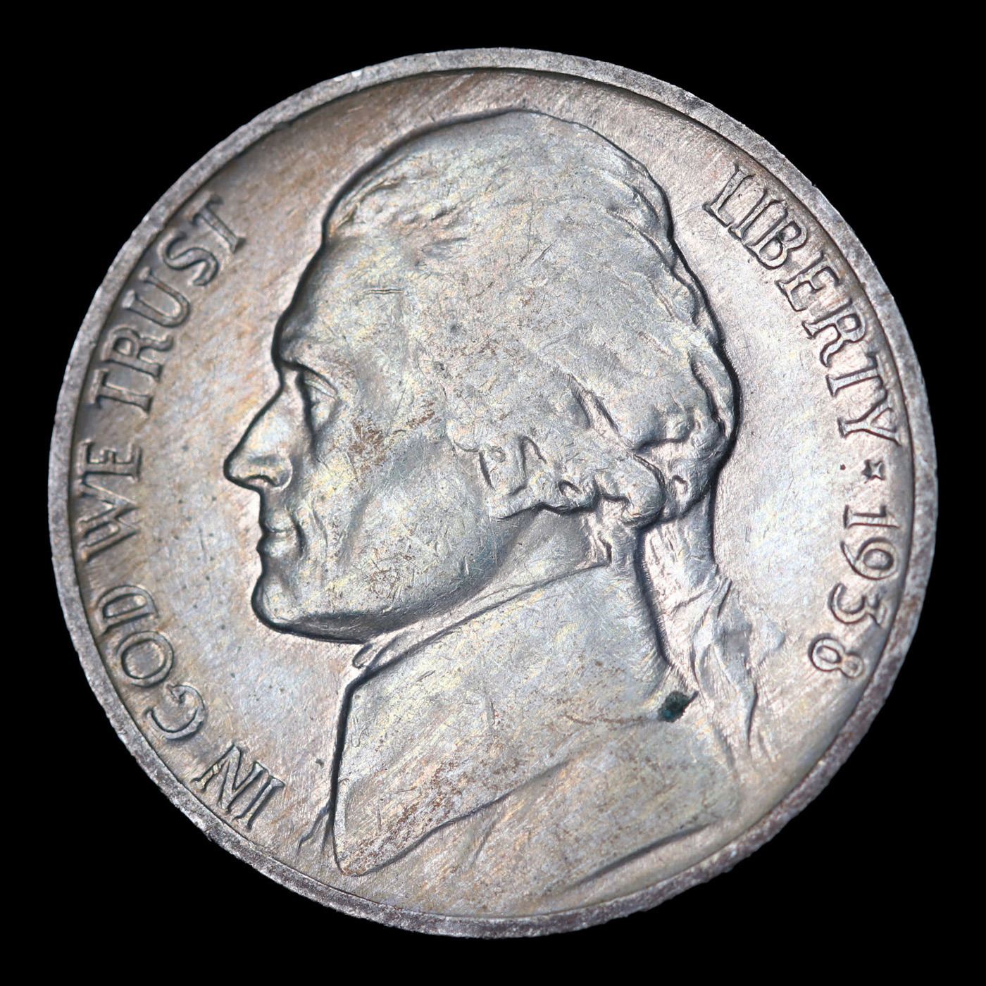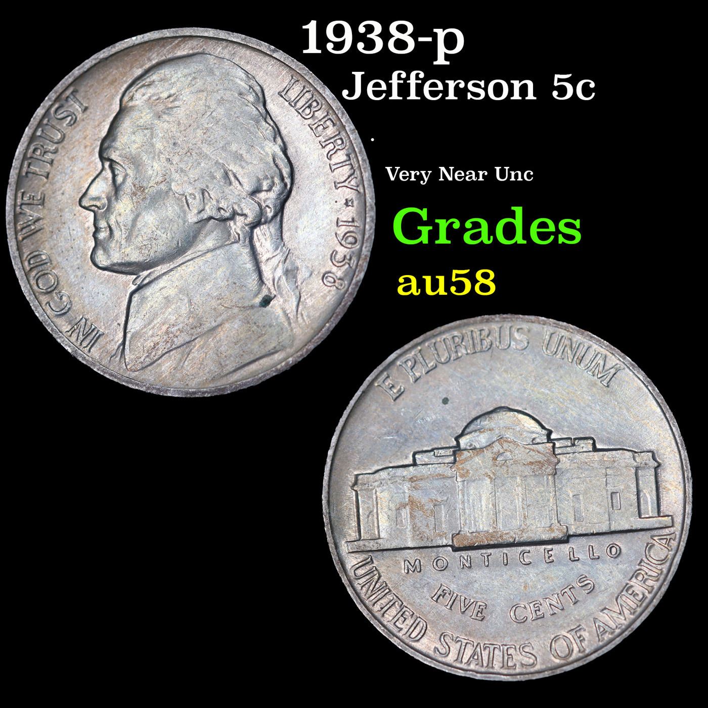1938-p Jefferson Nickel 5c Grades Choice AU/BU Slider.