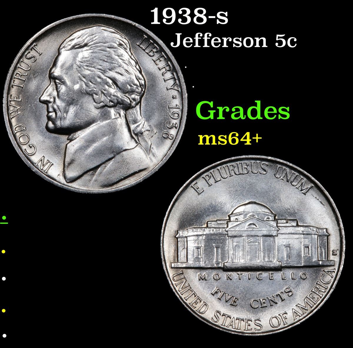 1938-p Jefferson Nickel 5c Grades Choice+ Unc.