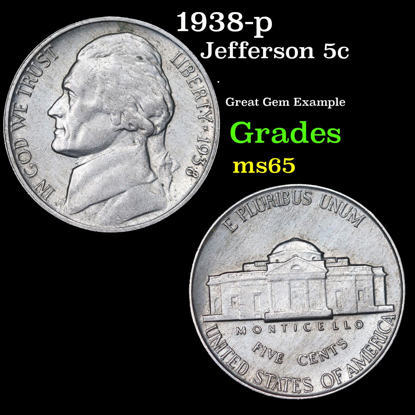 1938-p Jefferson Nickel 5c Grades GEM Unc.