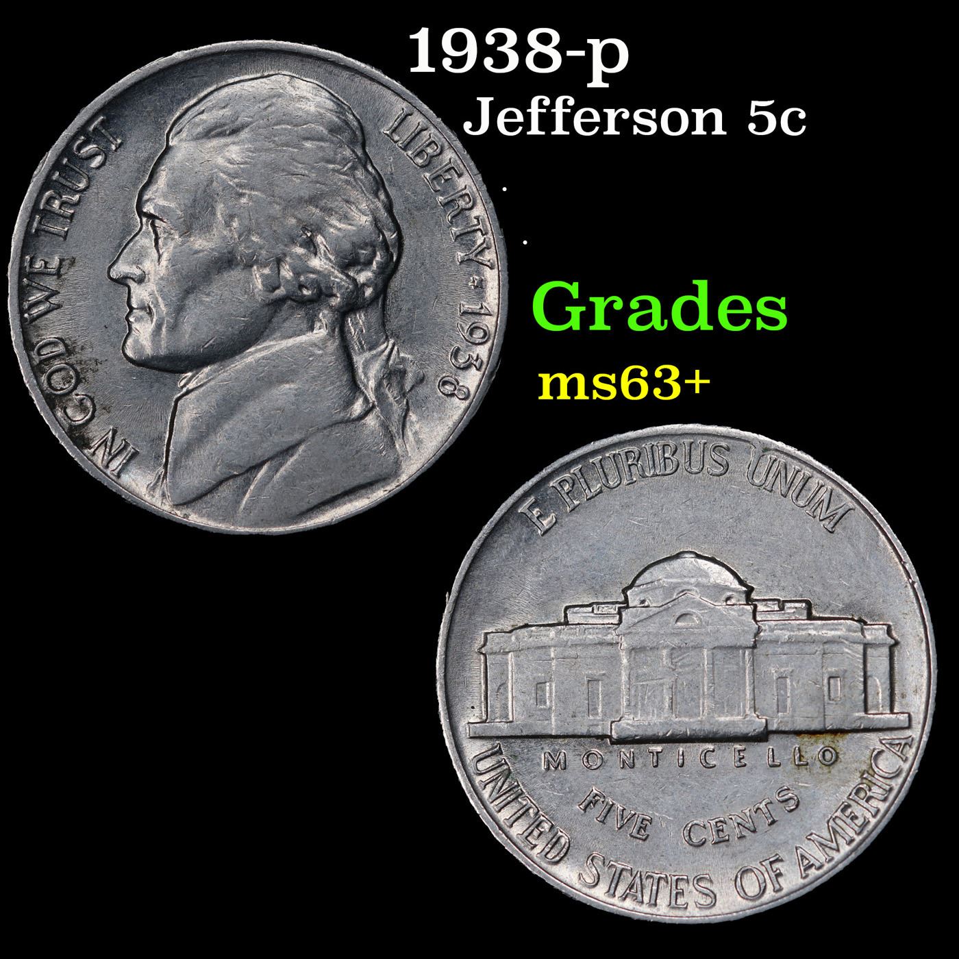 1938-p Jefferson Nickel 5c Grades Select+ Unc.