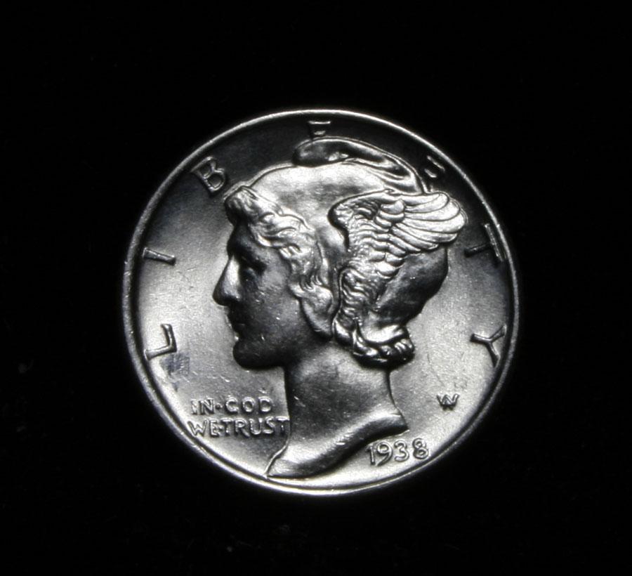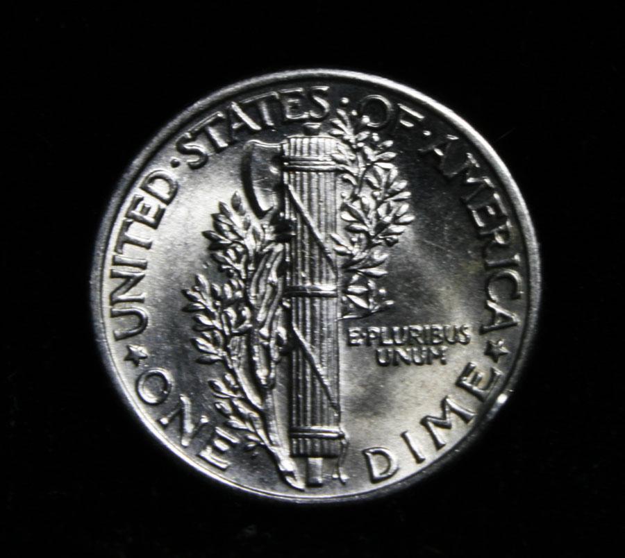 A Beautiful Full Split Band Mercury. Great Luster, Great Strike. I received about 10 stunning Mercurys from one consignee each is more beautiful than the next. This is one of the 10, all 10 are up today. Coin World's Coin Values lists ms65 FSB as $80 and The Wholesale Greysheet lists ms65 FSB at $60. Estimated Value $70.