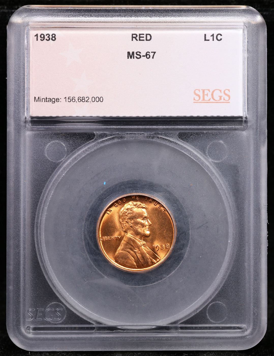 1938-p Lincoln Cent 1c Graded ms67 rd By SEGS.