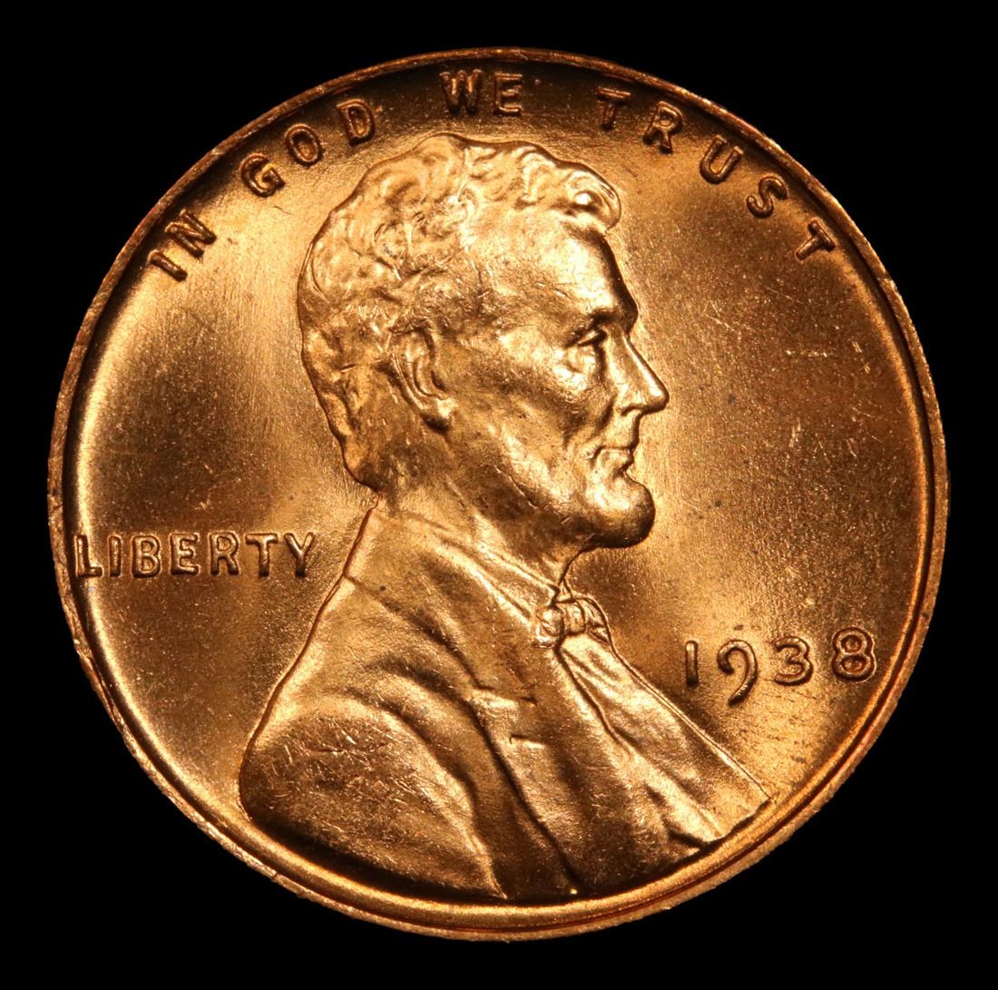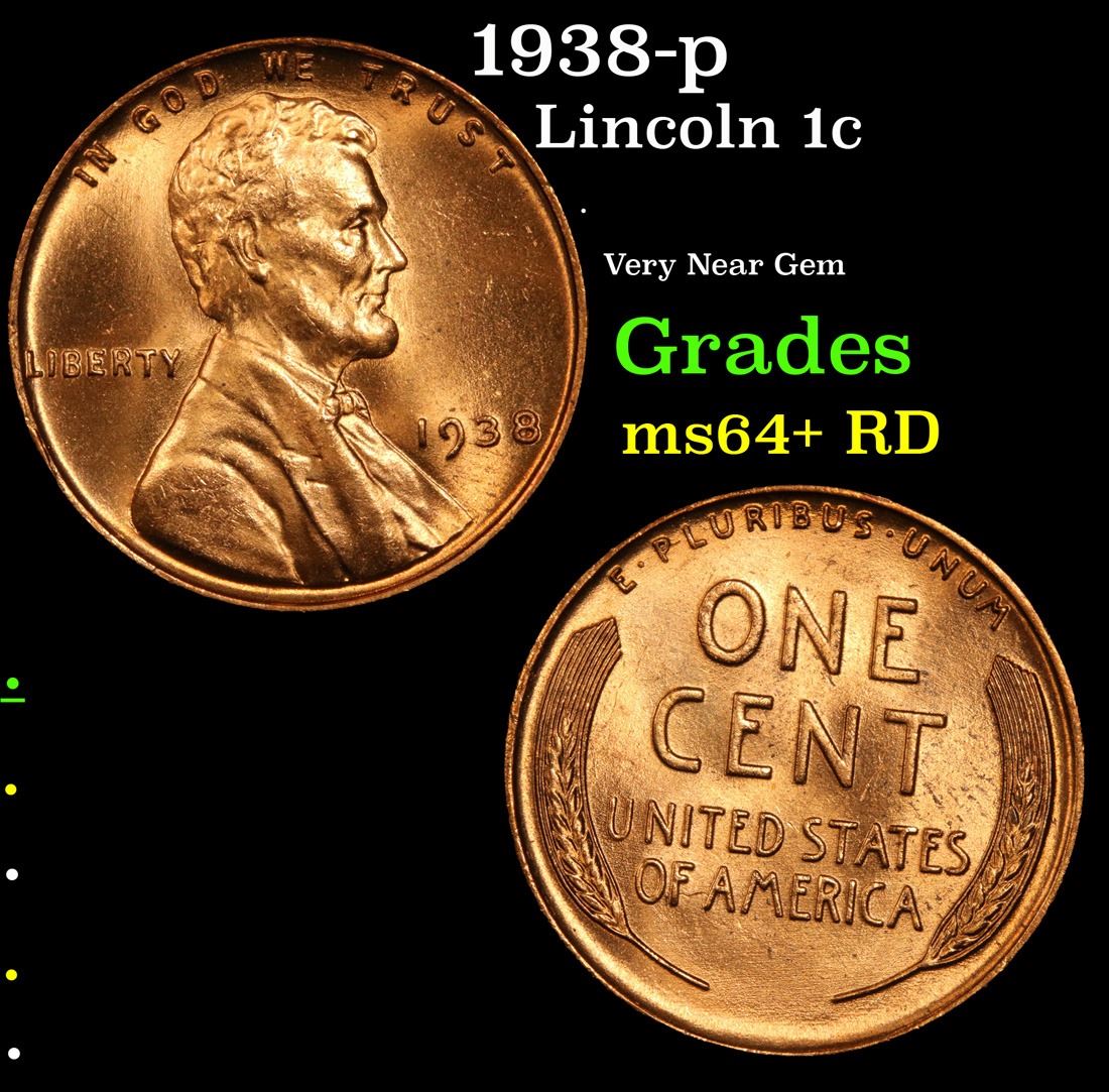 1938-p . Very Near Gem Lincoln Cent 1c Grades Choice+ Unc RD.