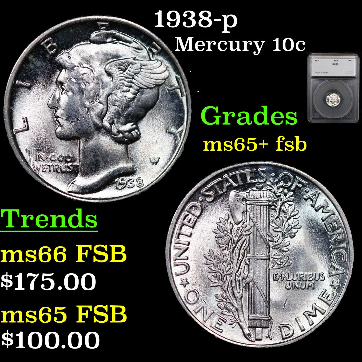 1938-p Mercury Dime 10c Graded ms65+ fsb By SEGS.