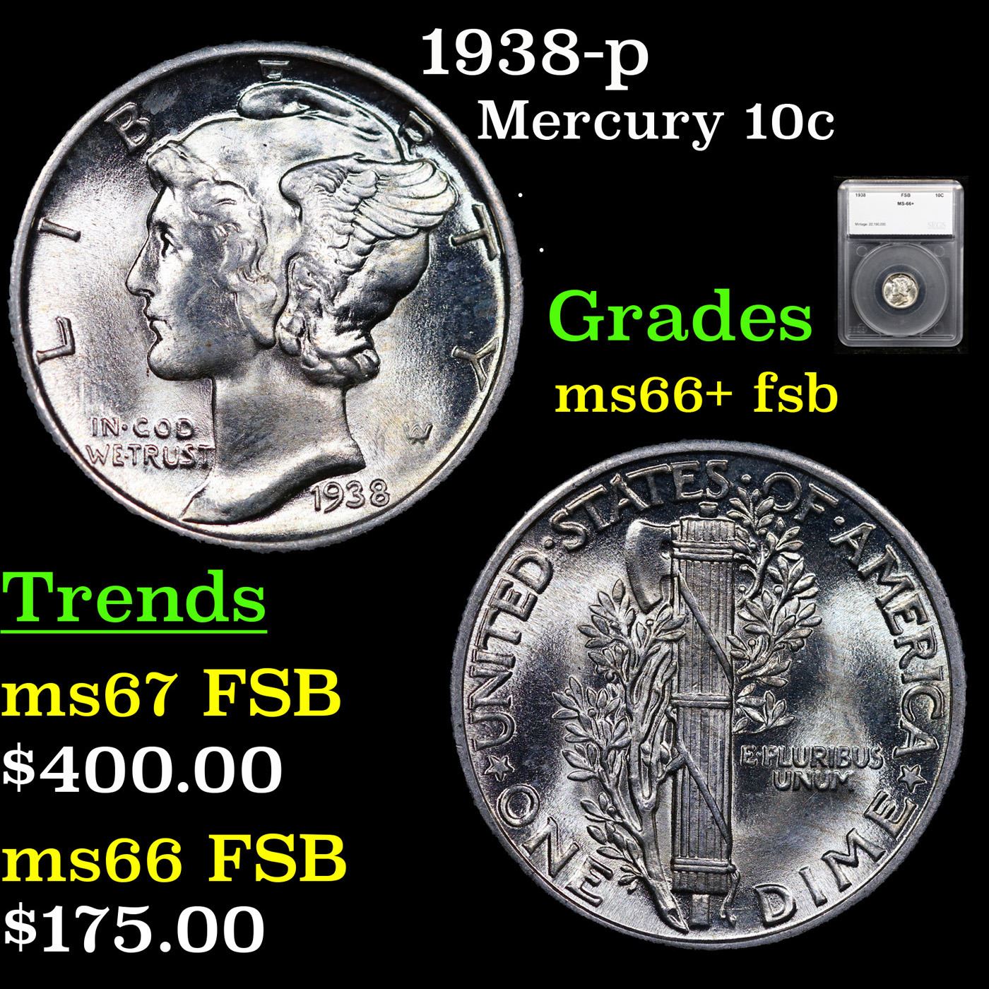 1938-p Mercury Dime 10c Graded ms66+ fsb By SEGS.