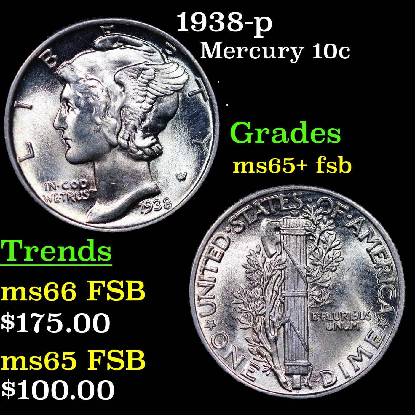 1938-p Mercury Dime 10c Grades GEM+ FSB.