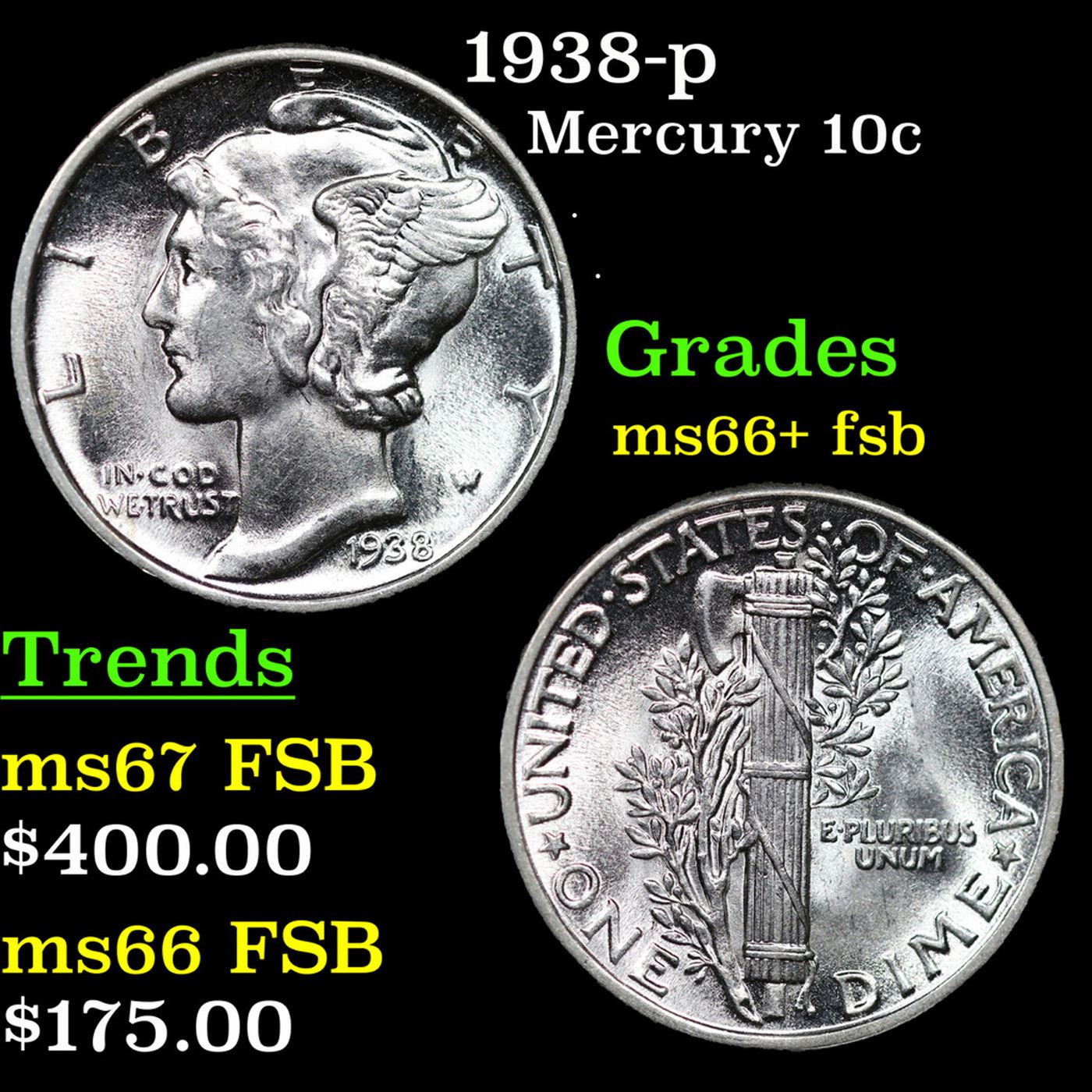 1938-p Mercury Dime 10c Grades GEM++ FSB.