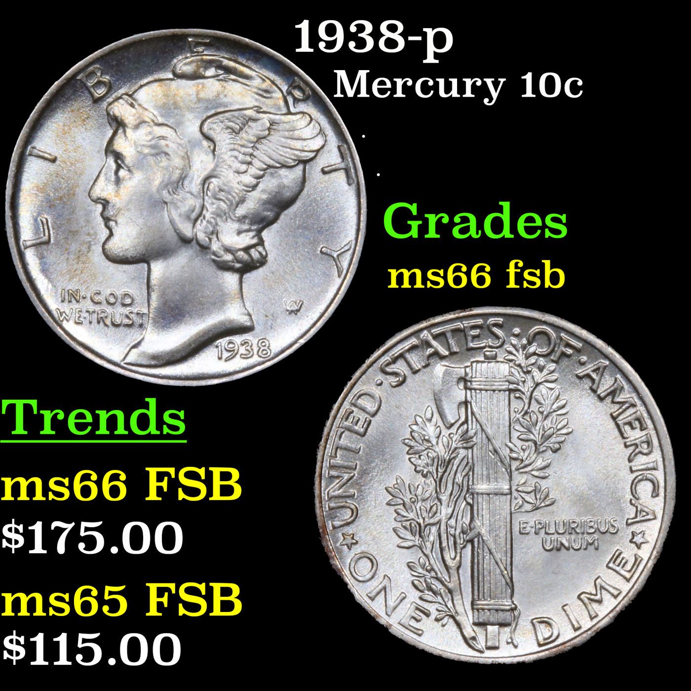 1938-p Mercury Dime 10c Grades GEM+ FSB.