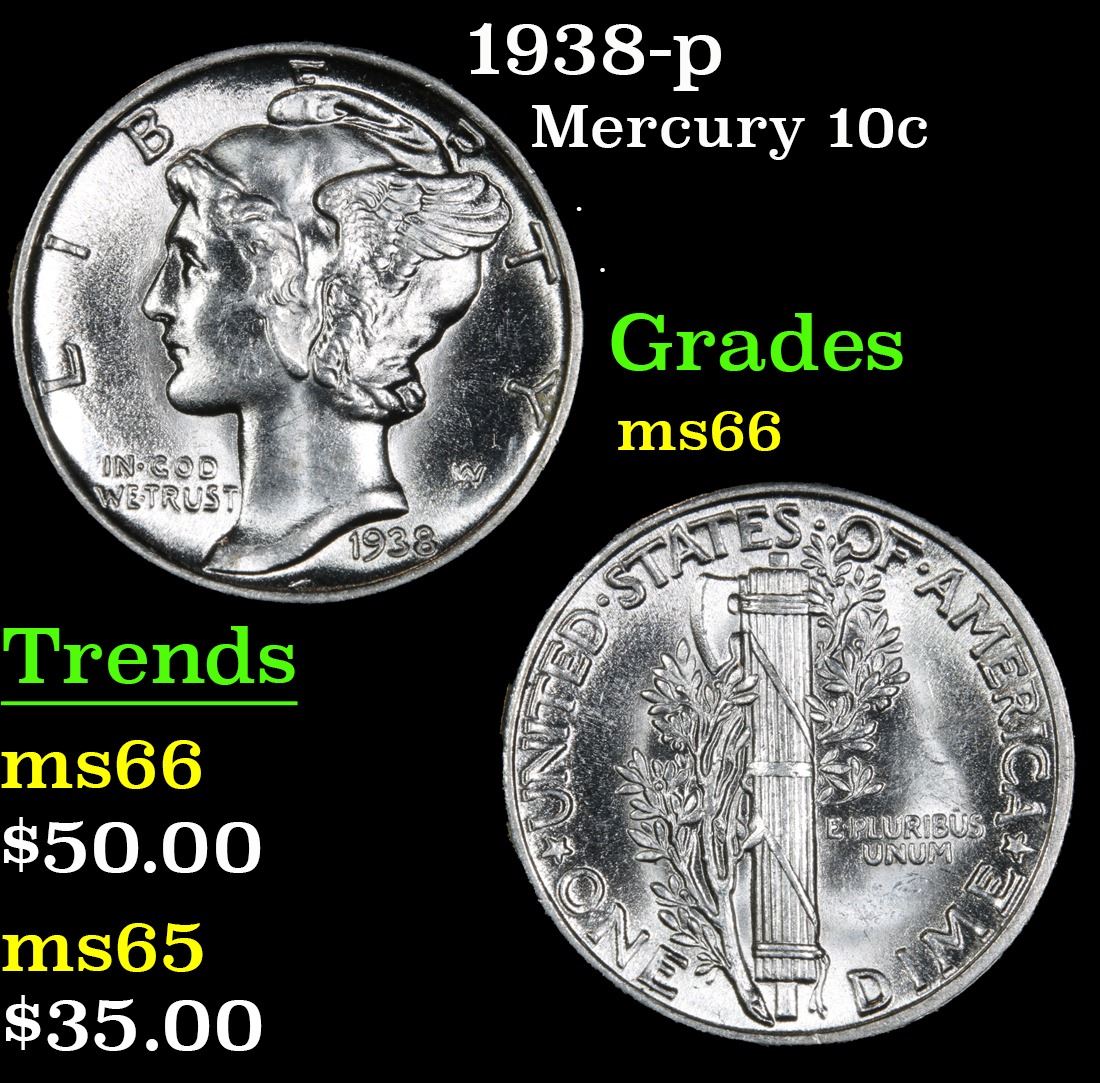 1938-p Mercury Dime 10c Grades GEM+ Unc.