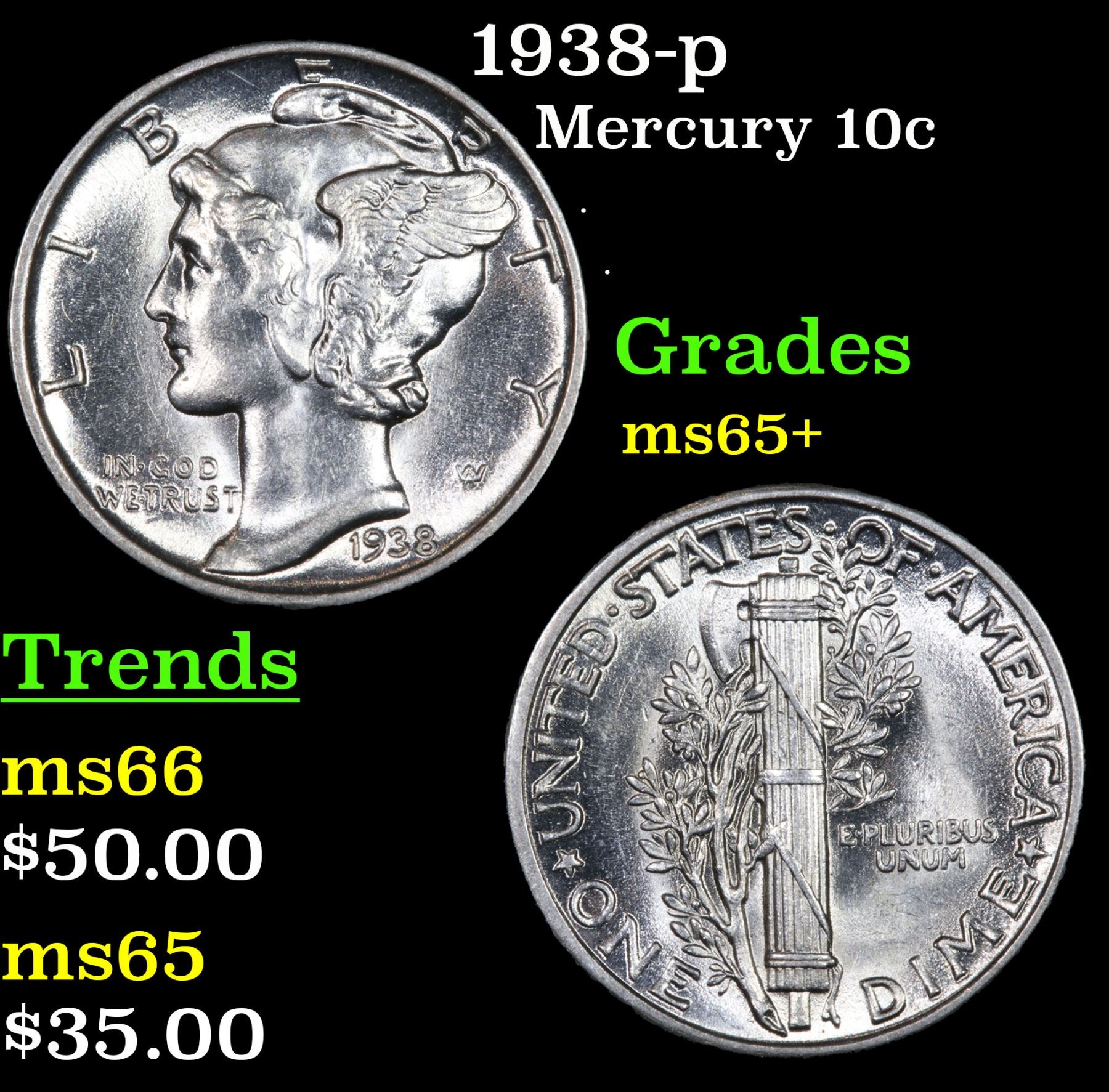 1938-p . . Mercury Dime 10c Grades GEM+ Unc.