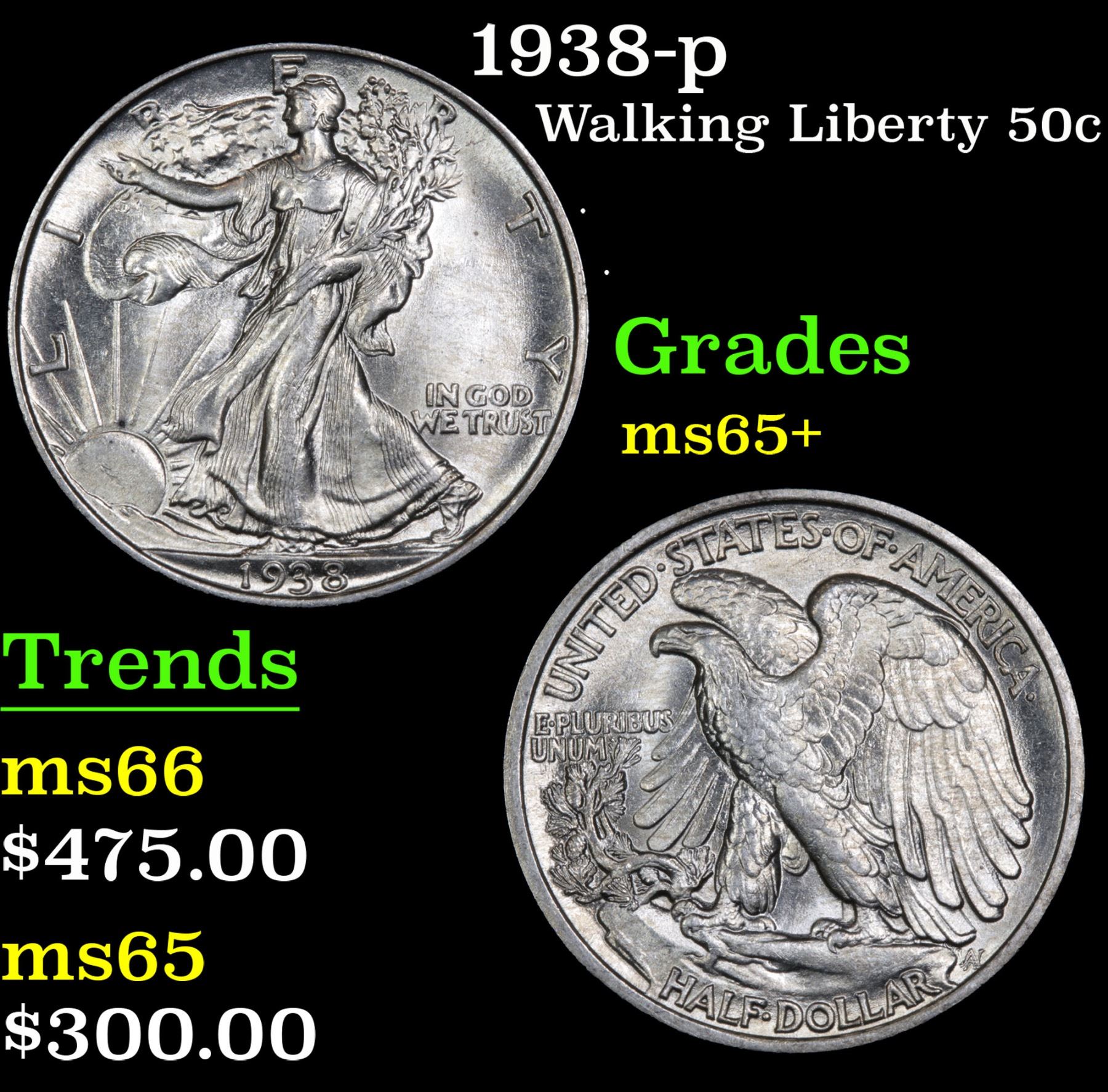 1938-p . . Walking Liberty Half Dollar 50c Grades GEM+ Unc.