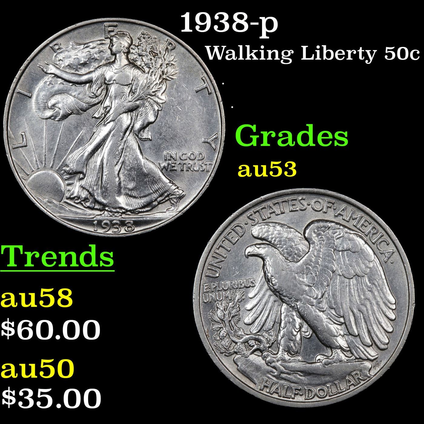 1938-p Walking Liberty Half Dollar 50c Grades Select AU.