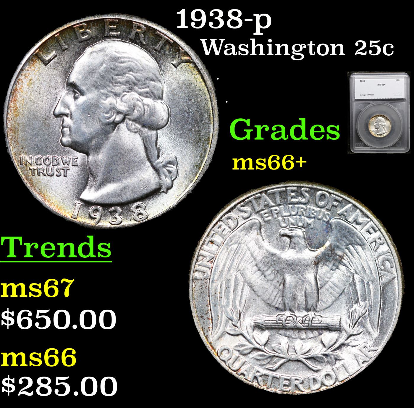 1938-p Washington Quarter 25c Graded ms66+ By SEGS.