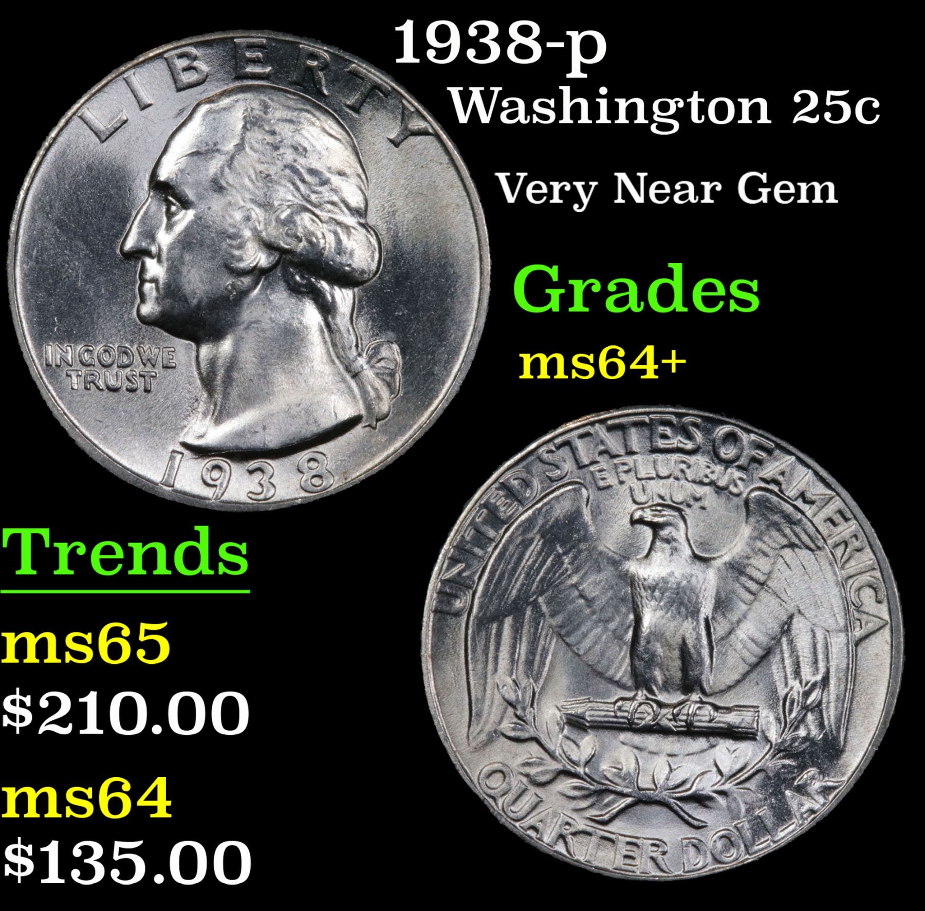 1938-p . Very Near Gem Washington Quarter 25c Grades Choice+ Unc.