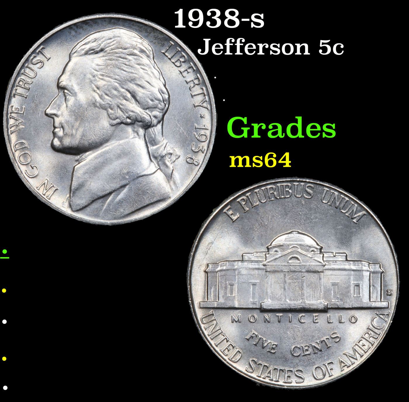 1938-s Jefferson Nickel 5c Grades Choice Unc.