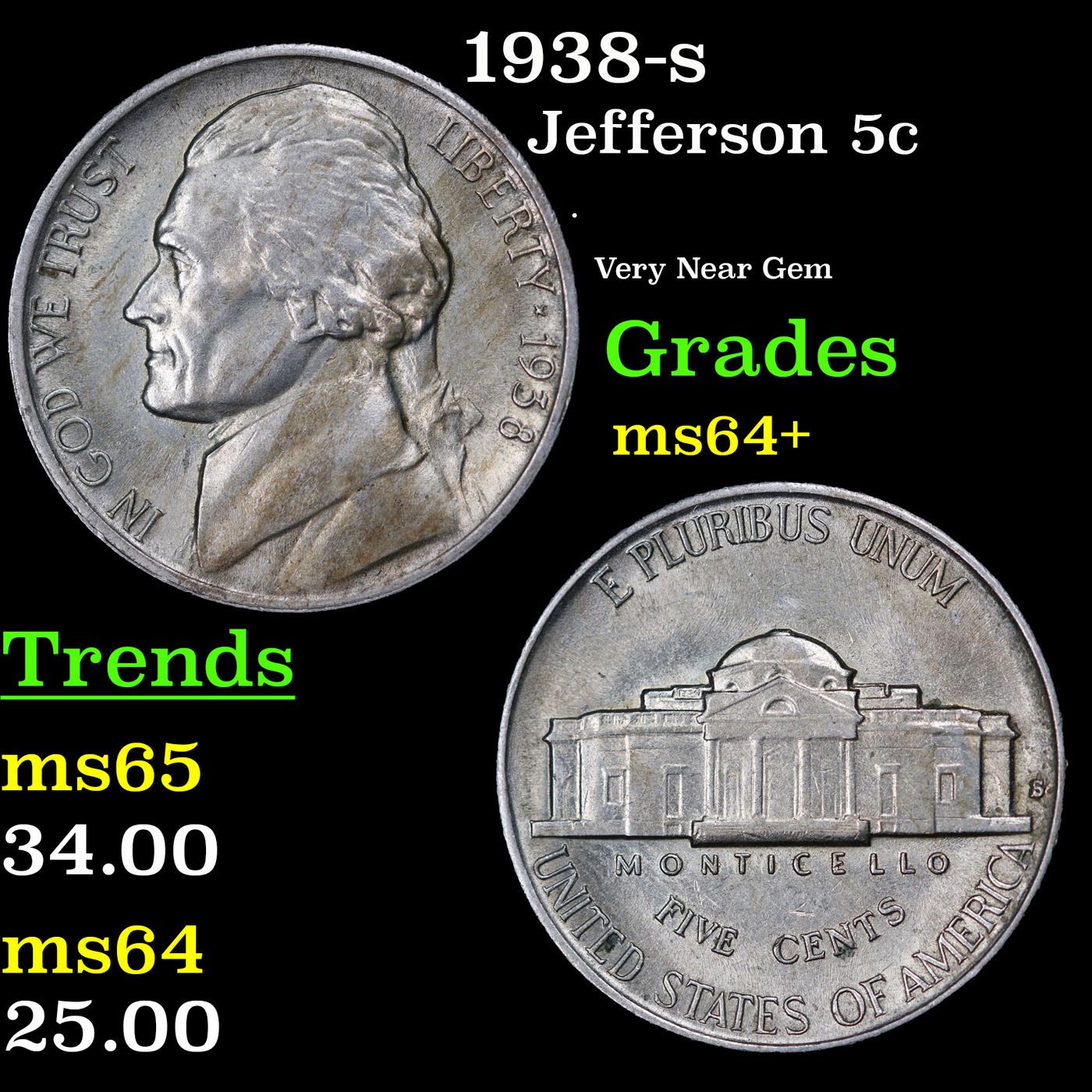 1938-s Jefferson Nickel 5c Grades Choice+ Unc.