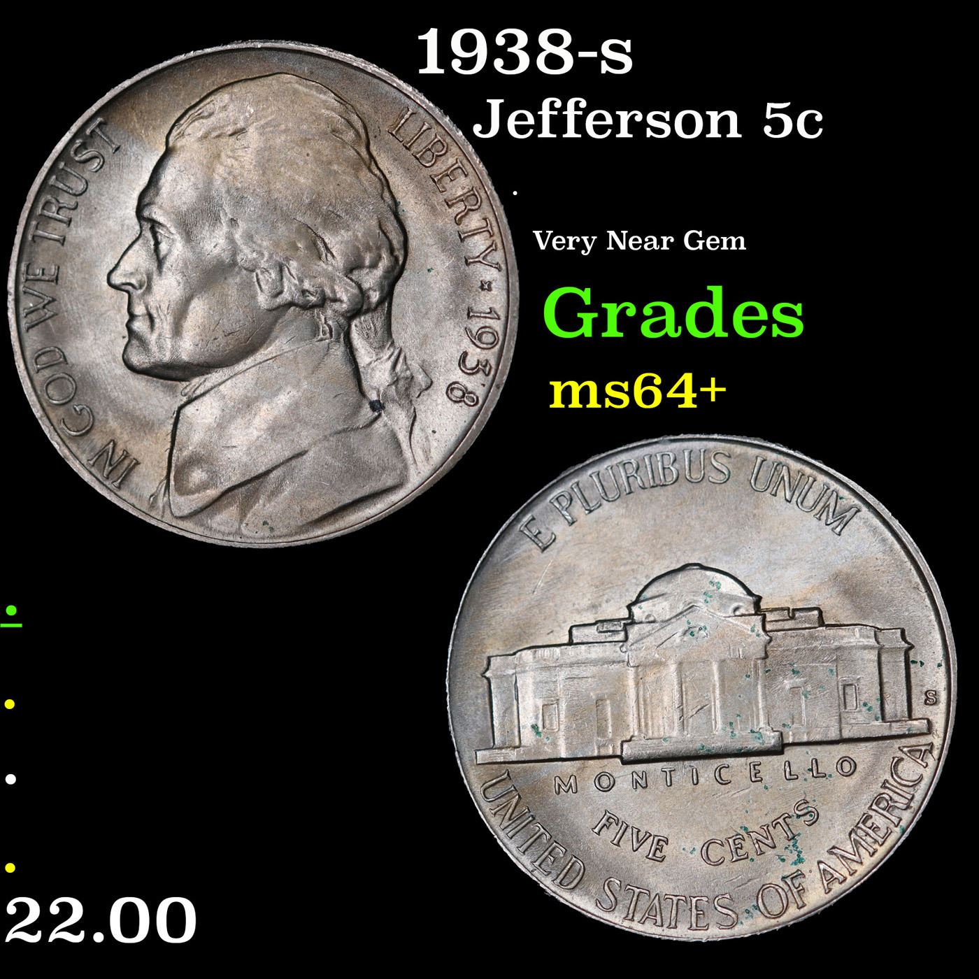 1938-s Jefferson Nickel 5c Grades Choice+ Unc.