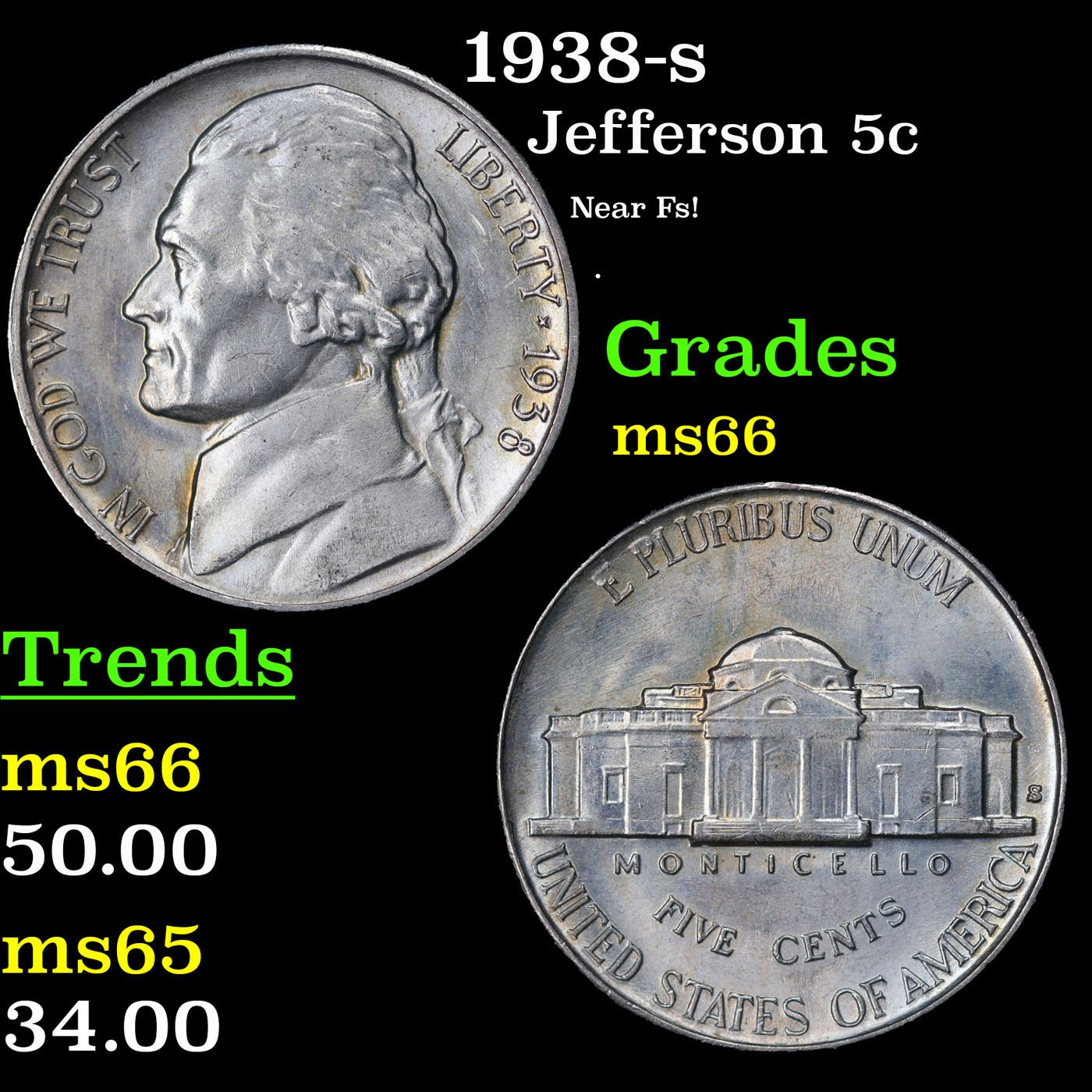 1938-s Jefferson Nickel 5c Grades GEM+ Unc.