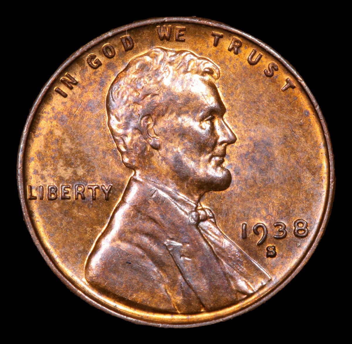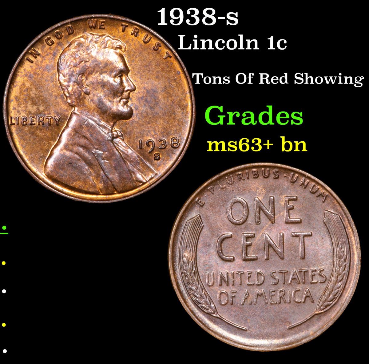 1938-s Tons Of Red Showing . Lincoln Cent 1c Grades Select+ Unc BN.