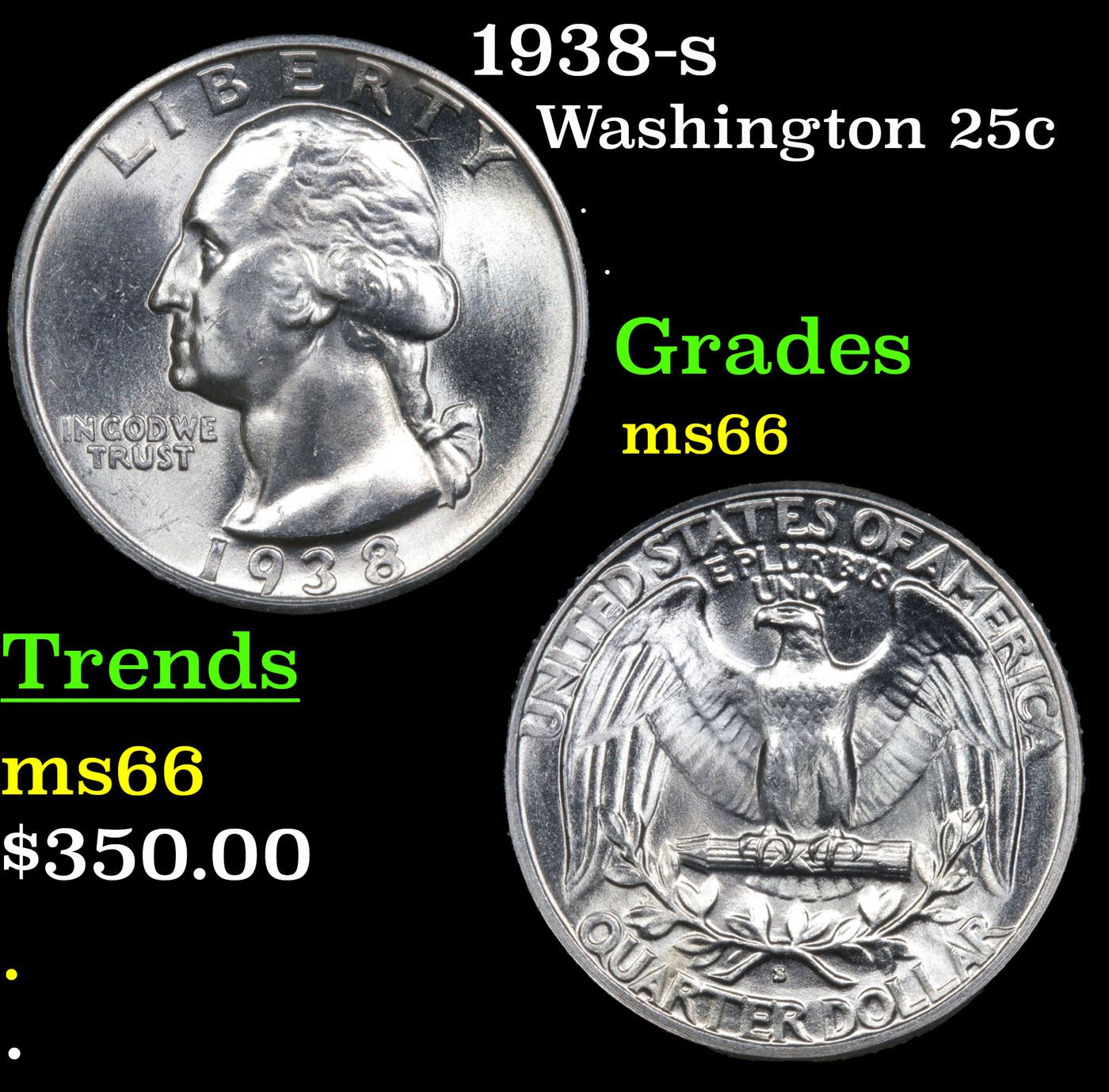1938-s Washington Quarter 25c Grades GEM+ Unc.