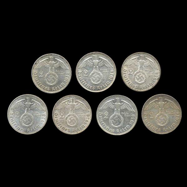 1938A/B/D/E/F/G/J Nazi Germany 2 Mark Silver Hi Grade 7 Pcs (COI-8079)