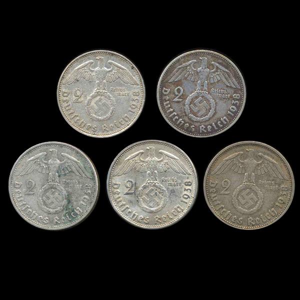 1938A/B/D/E/J Nazi Germany 2 Mark Silver Hi Grade 5 Pcs (COI-8078)