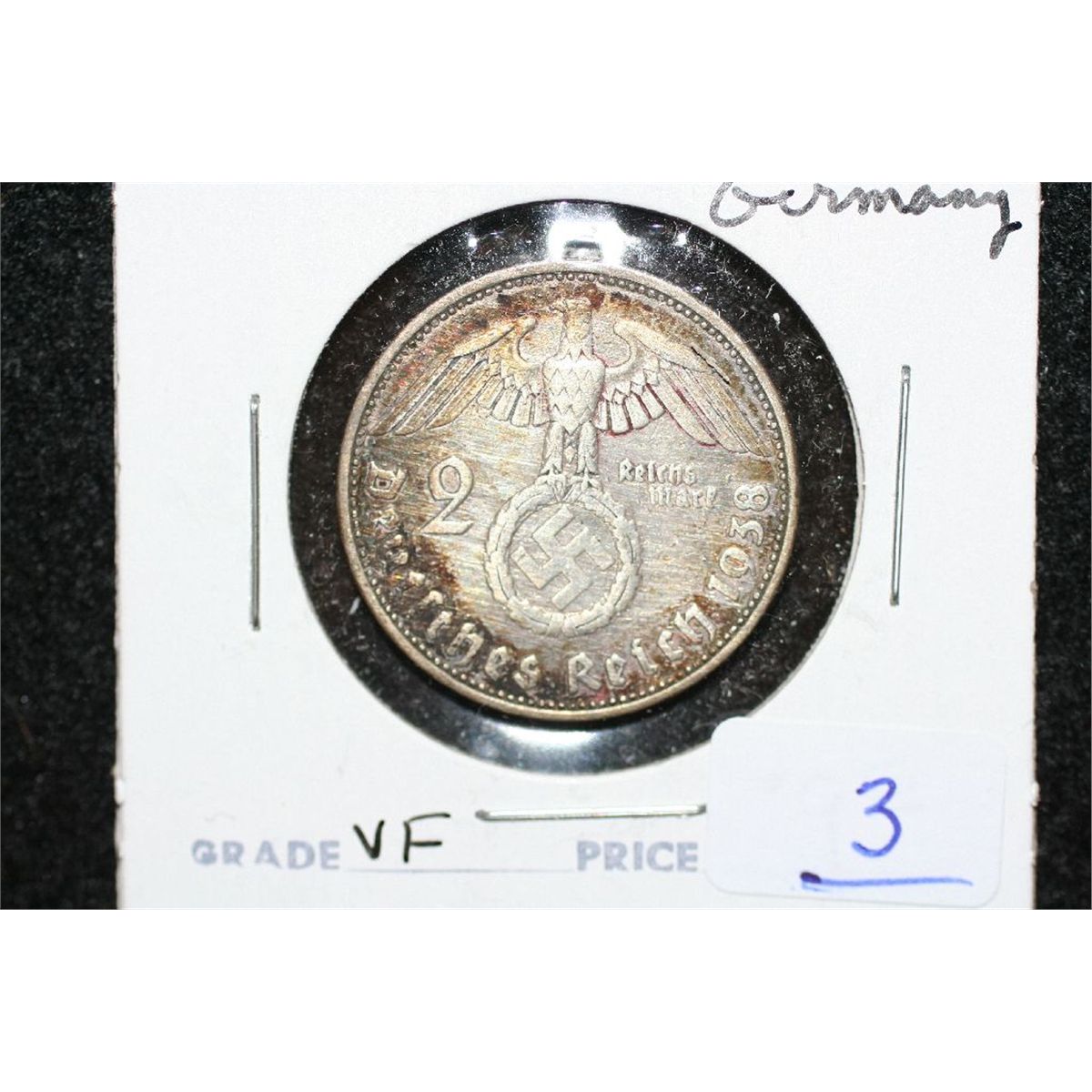 1938A Nazi Germany 2 Reichsmark, VF, Flying Eagle w/Swatstika