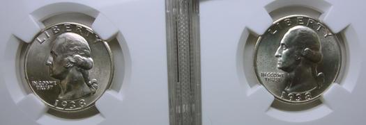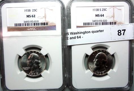 1938PS Washington quarter NGC62 and 64