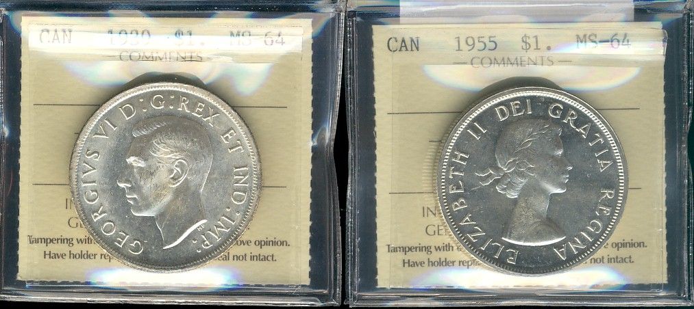 1939 $1 & 1955 ICCS MS64. Lot of 2 coins.