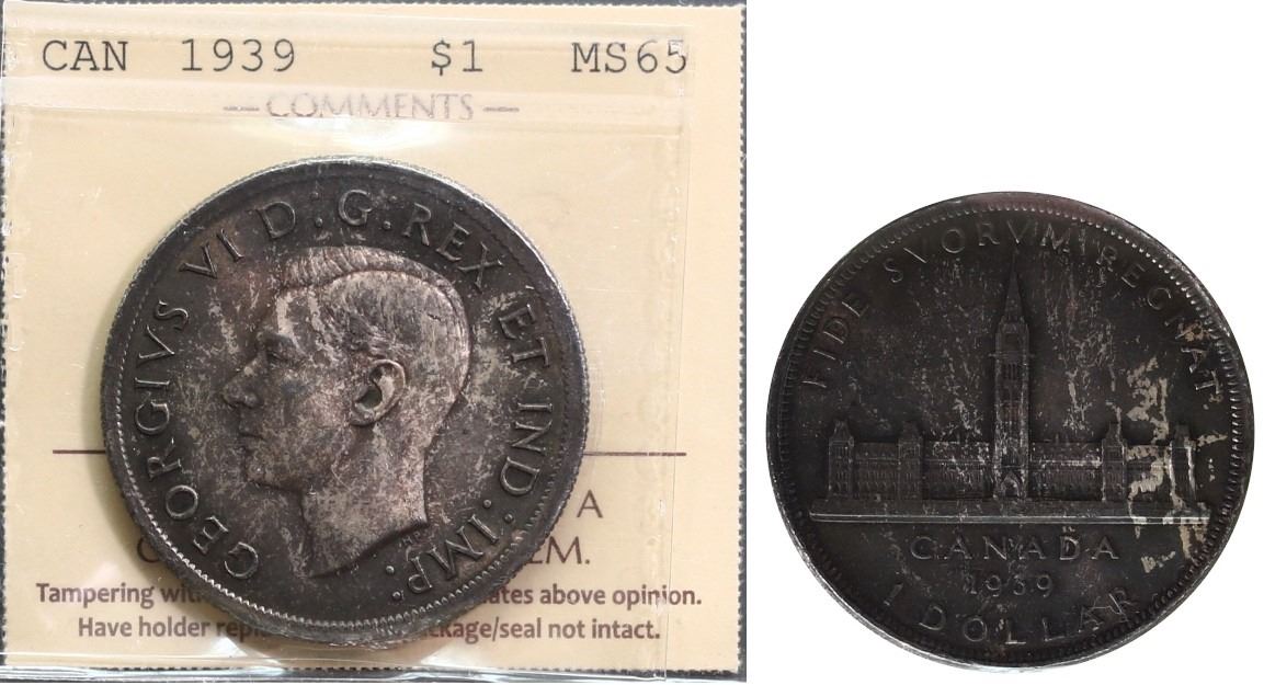 1939 $1 ICCS Gem Mint State-65 Intense russet and green tones over full underlying lustre.