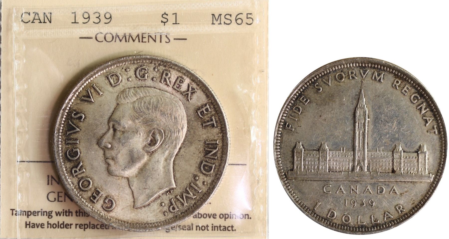 1939 $1 ICCS Gem Mint State-65 Lightly toned.
